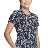 Este top estampado con cuello en V de ajuste clásico moderno presenta ribetes de contraste para resaltar el escote en forma. Las pinzas delanteras en el busto y las pinzas traseras brindan ajuste y forma. Hay tres bolsillos para almacenamiento: dos bolsillos de parche delanteros (a la izquierda con ranura para instrumentos) y un bolsillo utilitario en el lado derecho del usuario. Aberturas laterales para facilitar el movimiento. Largo del centro de la espalda: 26".