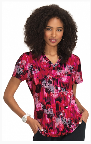 Luce increíble con esta elegante blusa estampada elástica con un corte clásico moderno.