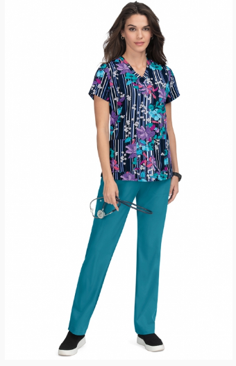 Luce increíble con esta elegante blusa estampada elástica con un corte clásico moderno.
